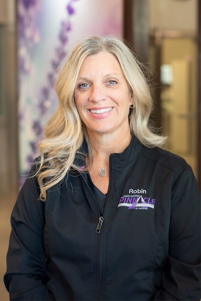 Robin relocated from Massachusetts to the John’s Creek area in 2002. She is a graduate of the Gwinnett Technical College Dental Assisting Program. Her previous experience is in general dentistry. She is very excited to be a part of the Pinnacle team and has a strong desire to learn the specialized field of endodontics.In her free time, she enjoys baking, playing tennis, being outdoors and beach trips with her husband and children.